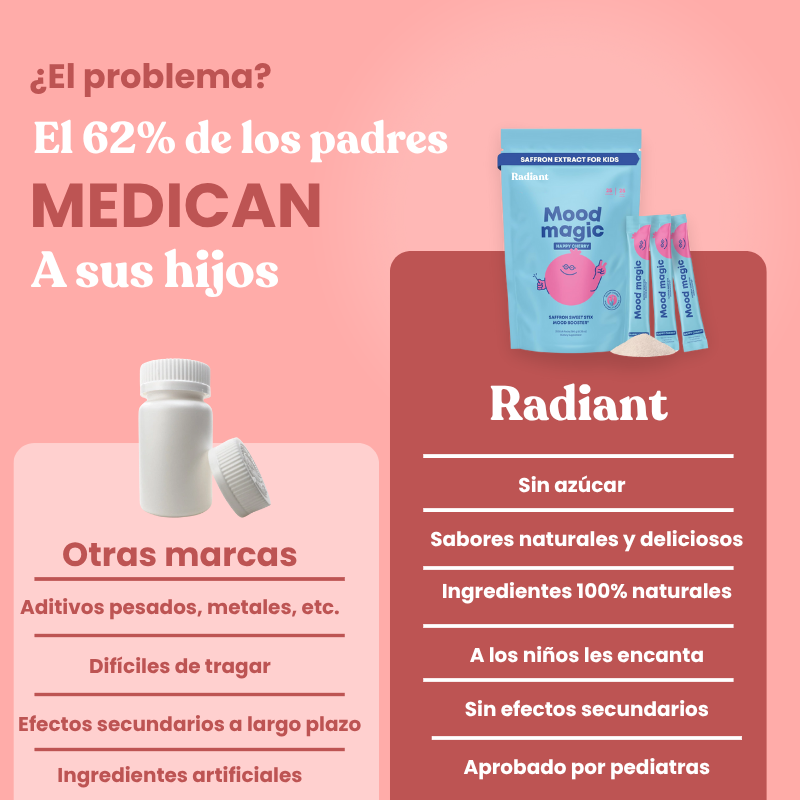 • Extracto de azafrán (20 mg) – La “especia dorada”, clínicamente probada para apoyar la regulación emocional y reducir estallidos de conducta en niños.
